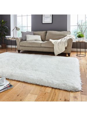 Plush Plain Shaggy Rug in White by Asiatic