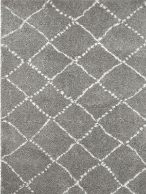 8. Royal Nomadic 7611 Geometric Shaggy Rug in Grey